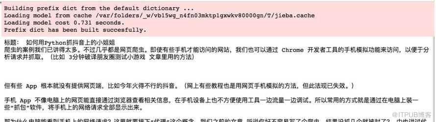 这里使用 goose3,而 python-goose 只要把其中的 goose3 改成 goose 即可,接口都是一样的。以我之前发过的一篇文章 如何用Python抓抖音上的小姐姐 为抓取目标来做个演示。