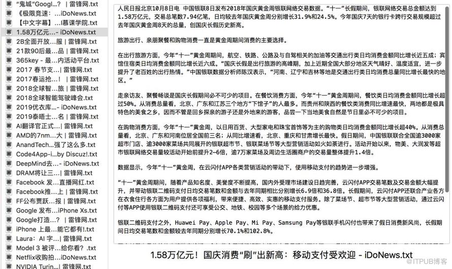 最后,我们来用 goose3 写小一段代码,自动抓取 爱范儿、雷锋网、DoNews 上的新闻文章: