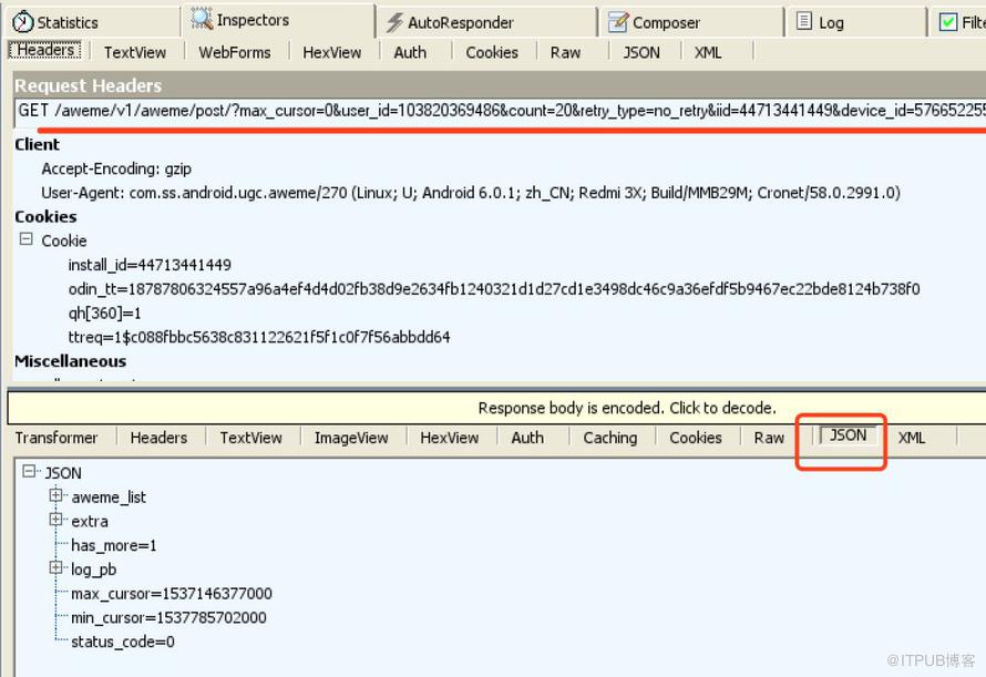 从 WebForms 栏里可以查看请求的详细参数信息。返回值是一个组 JSON 数据,里面包含了视频的下载地址。