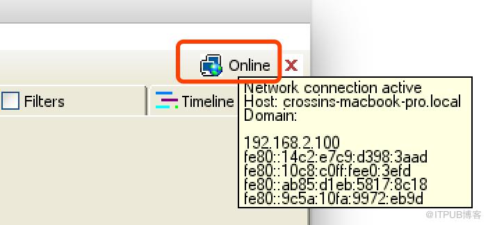 打开软件,鼠标放在右上角的 Online 上可以看到本机的 IP。或者也可以通过命令行中的 ipconfig 命令(Mac/Linux 是 ifconfig)查看。(截图仅为演示,以你自己的 IP 为准)