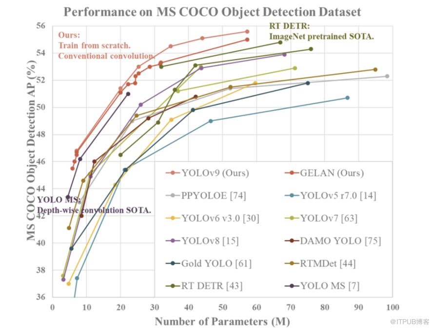 优秀性能:基于PGI和GELAN的设计,YOLOv9在MS COCO数据集上的性能表现超过了现有的实时目标检测器。这主要得益于其高参数使用率、轻量级特性以及快速准确的推理能力。