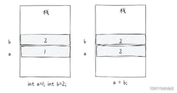 基本类型变量在内存中会直接存储变量的值,比如:int a = 1;
