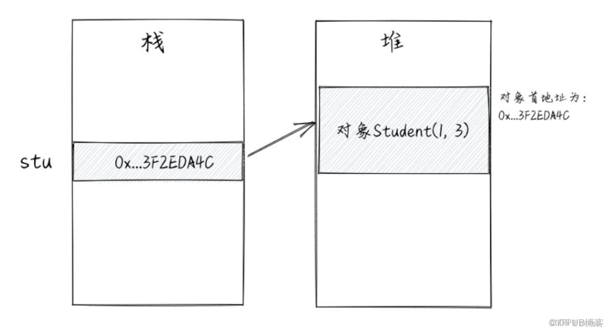 stu作为引用类型的变量,存的是Student对象在内存中的首地址。