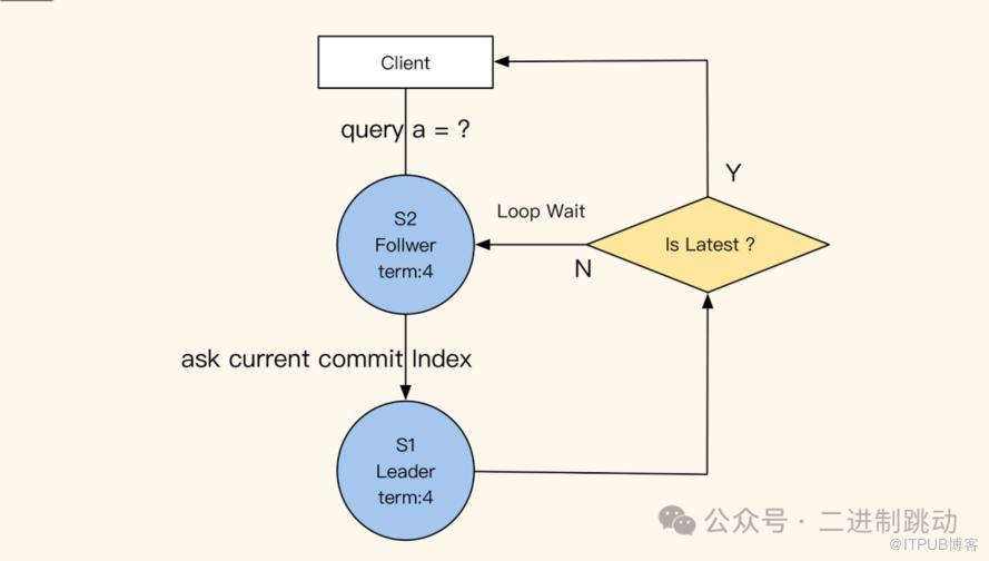 通过前面的讲解,我们了解了 Leader 和 Follower 之间的同步机制,那么从 Follower 的角度来看,它又是如何确保自己对外提供的数据始终是最新的呢?这里有一个小技巧:当 Follower 收到查询请求时,会同时向 Leader 请求当前最新提交的日志索引(commit log index)。如果这个日志索引大于 Follower 当前的同步进度,就意味着 Follower 的本地数据不是最新的。此时,Follower 会从 Leader 获取最新的数据并返回给客户端。