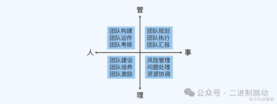 第一个是管理四象限,可以用来帮助你快速从 0 到 1 地搭建自己的管理视野,明确自己在成为管理者之后要做什么。