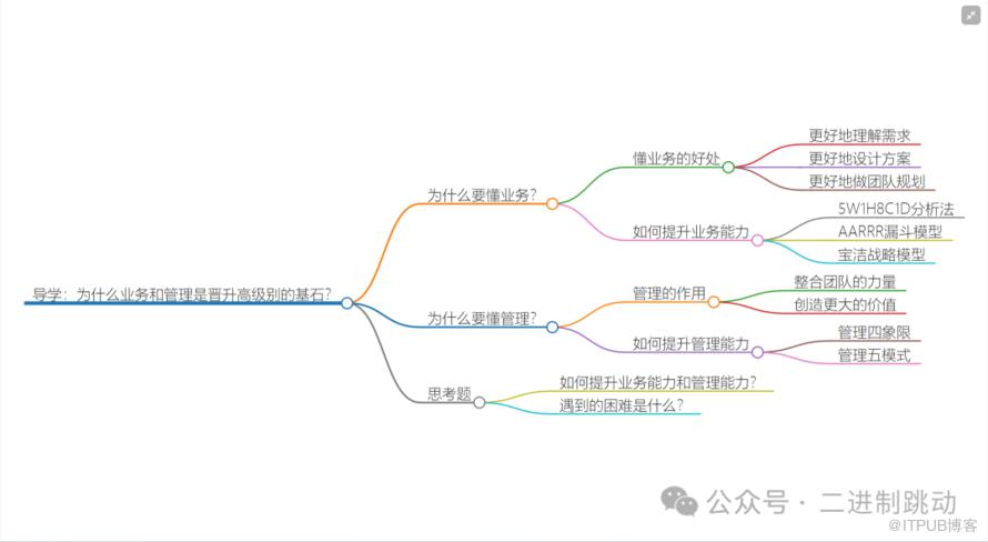 在很多技术人员初入职场之际,往往怀揣着一个单纯的念头:自己热爱技术,只想一门心思深入钻研技术,成为顶尖的技术高手。至于业务和管理方面的事宜,他们觉得还是交给其他人去处理为好。在他们看来,从事管理工作意味着要应对各种繁杂琐事,还要参加诸多无趣的会议;而做业务则需要与各种各样的客户打交道,揣摩客户的心思,这些事情他们都不愿参与。大家各司其职,在自己的专业领域内把事情做好就行,毕竟也没有规定产品和业务人员必须懂技术呀。他们期望在关键时刻展现自己的高超技术水平,如同武侠高手一般,平时不露声色,一旦出手便能惊艳众人。然而,这种想法虽然看似美好,却与现实不符。在第 3 讲中,我曾为大家介绍了三条晋升原则,其中价值原则指出,为公司创造价值才有机会获得晋升。对于高级别人员而言,业务能力和管理能力都是创造价值的核心能力。倘若你对业务和管理一窍不通,那么职场天花板将会很低,很难晋升到较高的级别。下面,我将分别针对业务和管理进行详细说明。