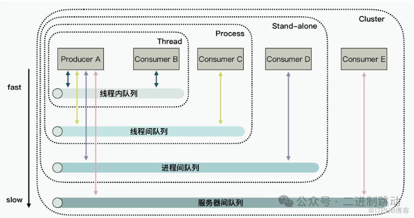 这也就是说,如果我们在线程内通信时选择了线程间队列,虽说它能够满足功能需求,然而由于需要处理同步互斥的问题,其性能通常并非最佳。所以,在选型设计阶段,我们应当优先选取既能满足通信要求,底层实现又最为迅速的消息队列类型。