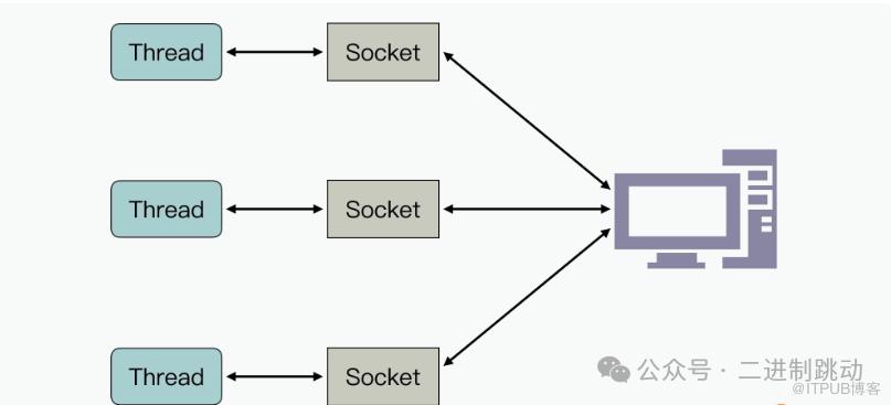 可以看到,每个 Socket 都会单独使用一个线程,在使用 Socket 接口进行写入或读取数据时,这个对应的线程就会被阻塞。