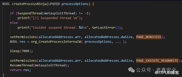 MyCreateProcess函数负责将 RWX Shellcode 的记忆体属性更改为 PAGE_NOACCESS
