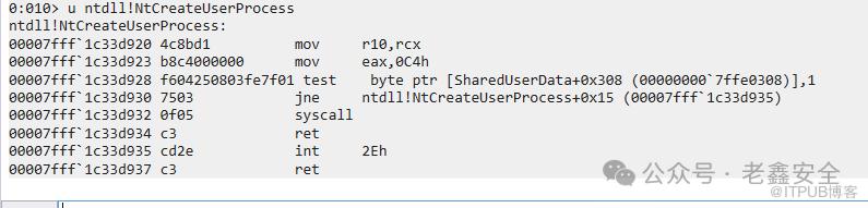 MyCreateProcess函数接续调用原始的CreateProcess() 函数 → 进到 Windows 内核 ntoskrnl!ZwCreateUserProcess