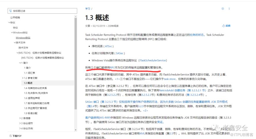 微软通过MS-DCERPC协议,在上层构建了MS-TSCH协议,该协议通过XML作为参数,实现了对计划任务的管理。
