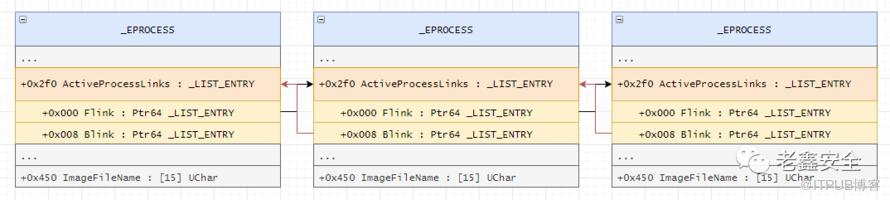 在这个结构里有一个关键成员——ActiveProcessLinks。它是一个指向LIST_ENTRY结构的指针