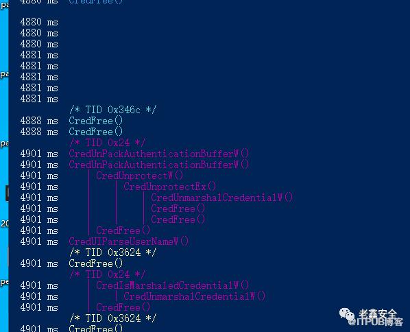 让我们使用frida-trace来查看explorer.exe在弹出窗口时是否调用过任何名为*Cred*的函数