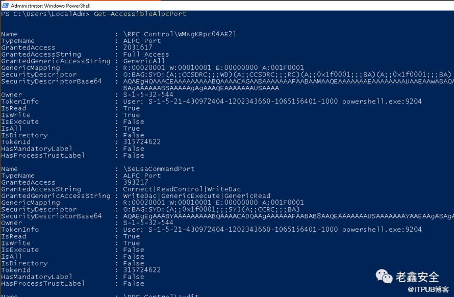 以下两个 PowerShell 可用于查找创建或连接到 ALPC 端口的.exe和.dll文件: