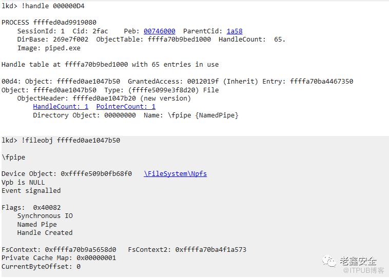 当我们创建命名管道时,假设我们将其称为“fpipe”,在底层下,正在一个名为“管道”的特殊设备驱动器上创建一个名为“fpipe”(因此:命名管道)的 FILE_OBJECT。