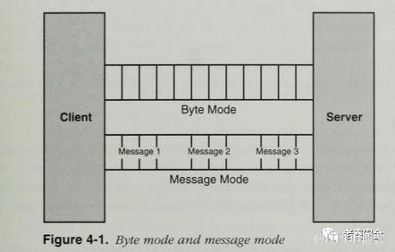 在字节模式下,数据以连续字节流的形式在客户与服务器之间流动。这也就意味着对于客户机应用和服务器应用在任何一个特定的时间段内都无法准确知道有多少字节从管道中读出或写入。在这种通信模式中,一方在向管道写入某个数量的字节后并不能保证管道的另一方能读出等量的字节,这可以让客户端和服务器在不关心数据大小的情况下传输数据。
