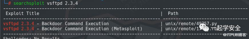 枚举总是能防止我遗漏掉些许信息。我决定先针对21FTP端口进行测试。幸运的是Nmap为我枚举探测出了服务信息版本作为参考。搜寻已知漏洞,得知Metasploit已经内置了该漏洞EXP: