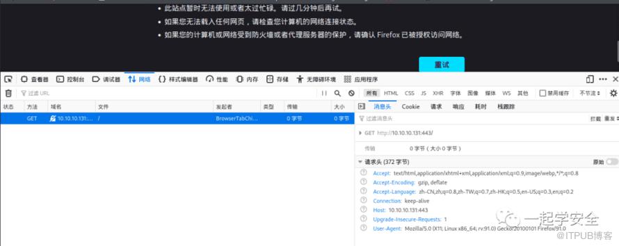 而我错误的认为我网络出现了问题与目标机器断开了连接,但我检测网络并未存在任何问题,80端口还是能够正常访问,我猜测是有另外一种机制阻挠了我与目标443端口的正常链接。右键检查,毫无收获。