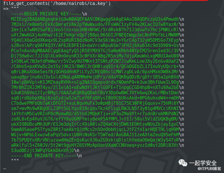 help菜单也无法再为我提供一些信息。于是我不得不按照目标机器给我的提示信息去读取 /home/nairobi/ca.key ,这是一个 SSL 证书颁发机构密钥。