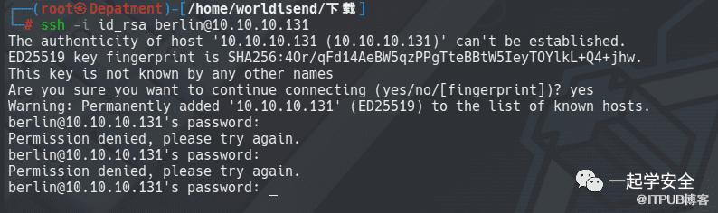 因为之前我通过PHP shell scandir()遍历目录发现user.txt位于home/berlin**,我认为获取到的密钥是用于berlin登陆服务器的。出乎意料的是,密钥认证并未通过,它还是要求我输入账号密码: