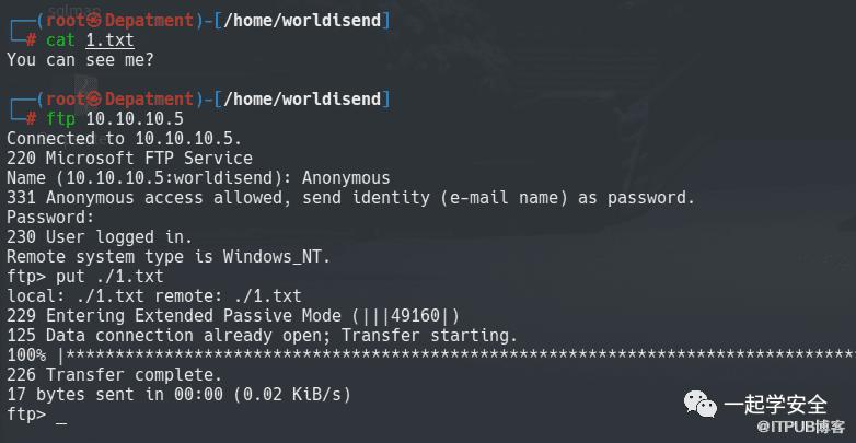 我将简单的" 1.txt " 放入了FTP共享目录中。