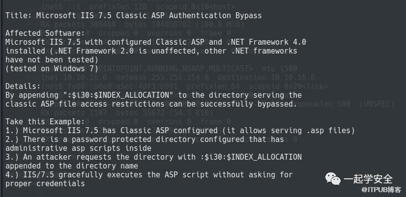 基于ASP脚本的未授权访问:通过向IIS7.5发送特殊的请求,可意外的访问到限制级目录,并优雅的执行ASP代码脚本。