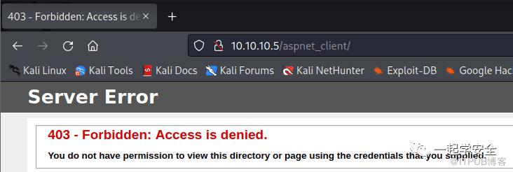访问FTP中扫描到的aspnet_client发现其对权限进行校验我无权访问。而我碰巧在刚刚获取到一些未授权访问漏洞利用的信息方法。