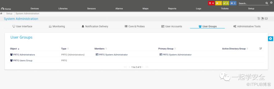 然后开始在仪表盘进行信息挖掘,来回点着看,点到用户组,发现孤零零的一个管理员账户,像极了ftp共享目录中在Users一个孤零零的只有public作伴的 Administrator 目录。然后我就在想这是不是联动的呀。