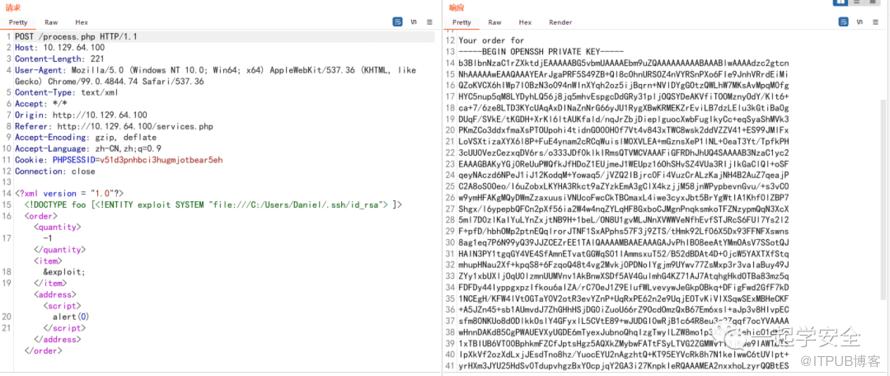 接着便开始构造payload尝试读取文件。https://book.hacktricks.xyz/pentesting-web/xxe-xee-xml-external-entity#read-file。值得注意是,路径的斜杠,操作系统识别的均为 "/",而html网页显示的普遍为"\",排个雷。构造完后发现可读文件。