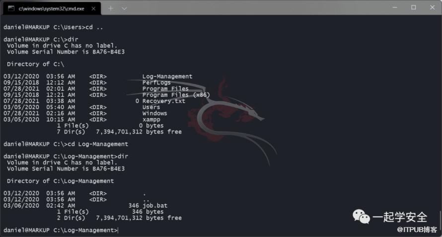 成功传到目标机器上,开始运行枚举可提权利用的信息。没有枚举到什么,只有一些文件的完全访问权,但是其中并没有什么看起来像是会以系统权限调用的东西。完全访问控制里有job.bat,然后我想起job.bat,