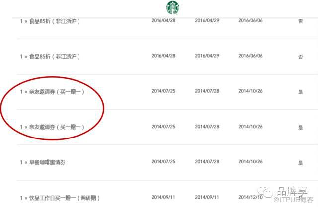 星享卡中经常会出现买三赠一、买二赠一、买一赠一的优惠券,乍看起来很优惠,其实并没有多大用处,没有多少人会一次性买那么多咖啡。这些券的真正意图是:让顾客带朋友来、或者买回去赠送朋友。这样就把星巴克传递给更多的人,让星巴克的社交媒介的形象更深。