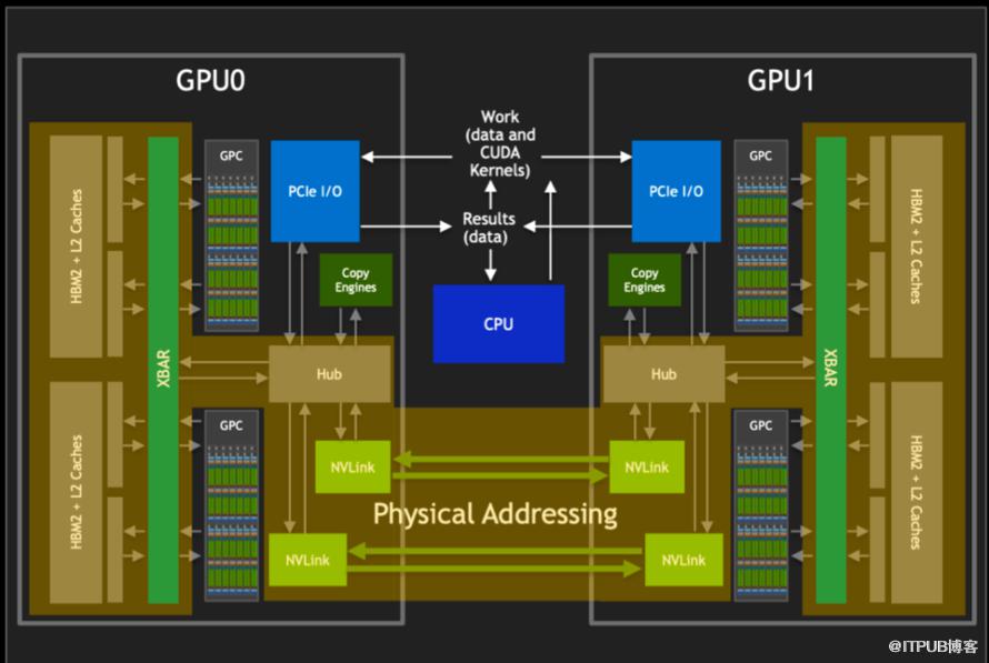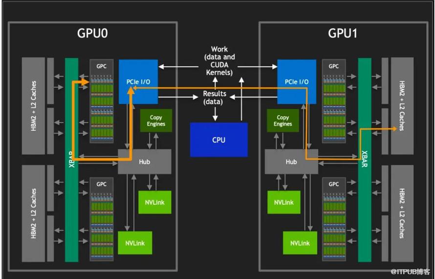 NVLINK技术的核心优势在于它能够绕过传统的CPU分配和调度机制,允许GPU之间进行直接的数据交换。这种设计不仅减少了数据传输的延迟,还大幅提升了整个系统的吞吐量。此外,通过NVlink GPCs 可以访问卡间 HBM2 内存数据,也可以对其他 GPU 内的 HBM2 数据进行访.