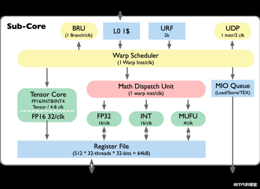 在Turing架构中,我们直接进入SubCore,即微内核,来了解Tensor Core的第二代。