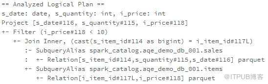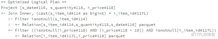 下面我们以一条关联销售表和商品表从中查询商品价格小于10的销售数据SQL为例,详细的介绍下这其中与QueryExecution相关的过程。