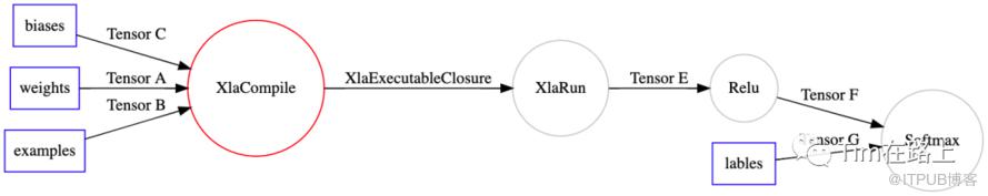 而JIT的编译过程XlaCompile中进行的,XlaCompileOp编译得到的二进制直接送到紧接其后的XlaRunOp中执行。