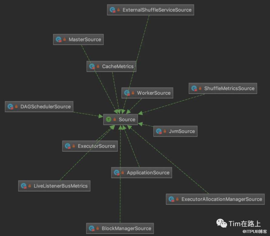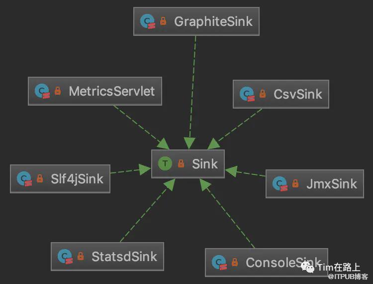 registry:度量注册中心,是com.codahale.metrics.MetricRegistry类的实例,Source和Sink都是通过它注册到度量仓库的。这里“度量仓库”并不是Spark内部的东西,而是Codahale提供的度量组件Metrics,Spark以它为基础来构建度量系统。