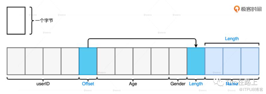 下面我们分析下直接采用JAVA对象存储的问题:我们拿类型是 String 的 name 来举例,如果一个用户的名字叫做“abcd”,它本应该只占用 4 个字节,但在 JVM 的对象存储中,“abcd”会消耗总共 48 个字节,其中包括 12 个字节的对象头信息、8 字节的哈希编码、8 字节的字段值存储和另外 20 个字节的其他开销。