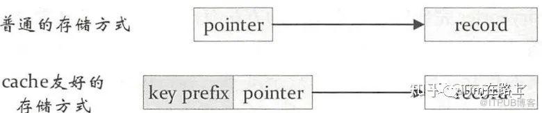 常规的做法是每个键值对record中有一个指针指向该record,对两个record 比较时先根据指针定位到实际数据,然后对实际数据进行比较,由于这个操作涉及的是内存的随机访问,缓存本地化(空间局部性)会变得很低。