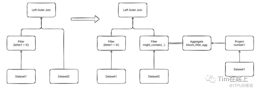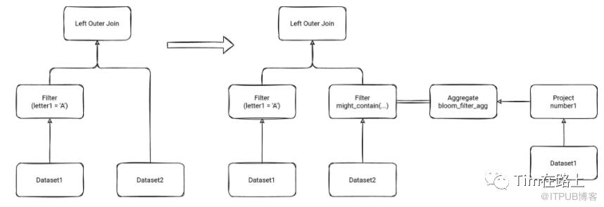 在Spark中使用spark.sql.optimizer.runtime.bloomFilter.enabled和spark.sql.optimizer.runtimeFilter.semiJoinReduction.enabled属性启用的行级运行时过滤器。它引入了两种不同的优化,分别是基于聚合的连接的聚合布隆过滤器和将join转换为带有子查询的Semi-Join Filter。