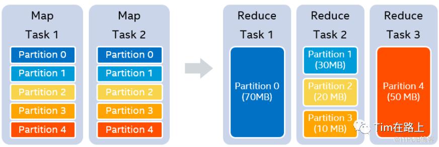 如果分区数太小,则并行度较低,每个reduce任务必须处理更多数据。由于内存可能无法保存所有数据,甚至会发生溢出到磁盘。在最坏的情况下,它可能会导致严重的 GC 问题或 OOM。此外,如果某些任务处理的数据比其他任务多得多(即数据倾斜),或者由于磁盘较旧、CPU 频率较低等原因运行时间较长,整个集群的资源利用率就会降低,当前阶段的执行时间会更长。这时候就需要通过增加分区数,减少某个分区处理的数据量,可以减轻这类问题的影响。