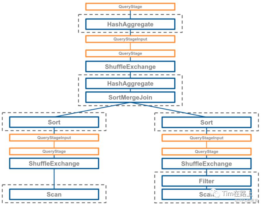 总之,如图所示,在非AQE的情况下,SparkSQL会转换为DAG图,然后DAGScheduler基于shuffle将其划分为多个stage, 然后再执行stage。