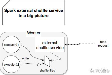 现在我们在来看下external shuffle service(ESS),其乍从其名字上看,ESS是spark分布式集群为存储shuffle data而设计的分布式组件。但其实它只是Spark通过Executor获取Shuffle data块的代理。
