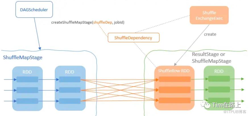 这里简单介绍下ShuffleExchangeExec操作算子。ShuffleExchangeExec主要负责两件事:首先,准备ShuffleDependency,它根据父节点所需的分区方案对子节点的输出行进行分区。其次,添加一个ShuffleRowRDD并指定准备好的ShuffleDependency作为此RDD的依赖项。