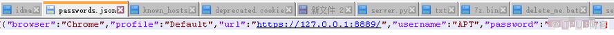dpdata.exe为rust编译的浏览器密钥窃密工具,运行后本地生成passwords.json,记录浏览器用户名和密码。