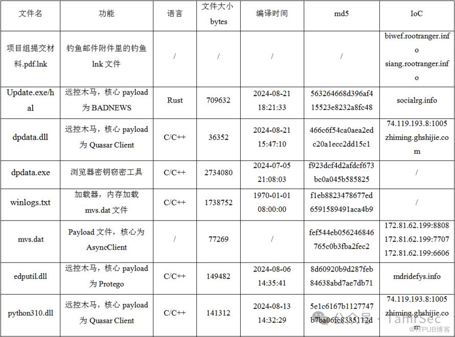 Patchwork组织最早于2009年左右被发现,在2015年的攻击行动被国外安全厂商Cymmetria披露为Patchwork。主要攻击中国、巴基斯坦、孟加拉国等国家军工、外交、教育,科研机构等,窃密重要数据。该组织主要使用鱼叉式钓鱼攻击,附件为伪装为PDF的LNK恶意文件,通过脚本命令从远程C2服务器下载后续恶意程序,使用多种自研或开源的攻击套件,如,自研BADNEWS远控木马、开源QuasarRat远控木马、开源AsyncRat远控木马、商业Remcos RAT、开源NorthStarC2等。