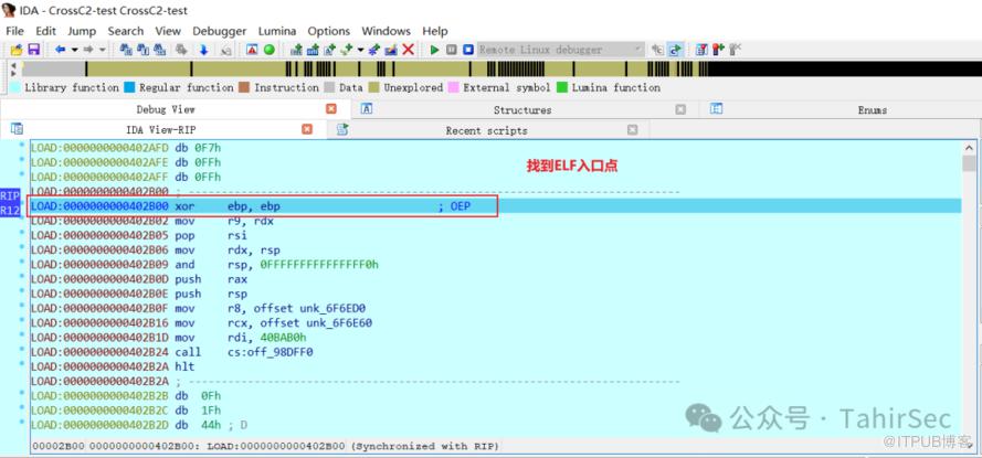 IDA识别到ELF头部信息,即将跳转值ELF程序入口点。