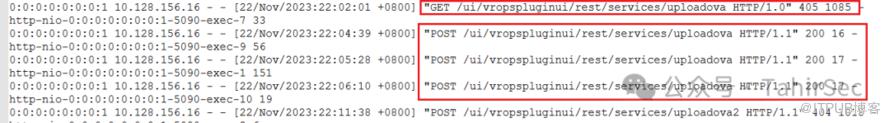 /ui/vropspluginui/rest/services/uploadovaGET方法探测漏洞返回405说明漏洞存在,POST方法返回200,说明漏洞可能被利用。